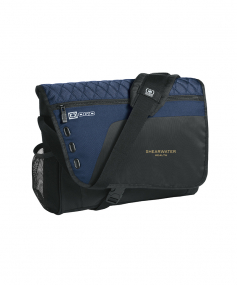 1,680D poly/450D poly/600D poly/400D nylon twill. Interior padded laptop compartment and padded tablet/e-reader sleeve. Features padded mouse/digital camera pocket, organization panel, side beverage/accessory holster, interior divider with organization panels, and adjustable, padded shoulder strap. Complies with Prop 65. 11.25" H x 14.25" W x 3.5" D
