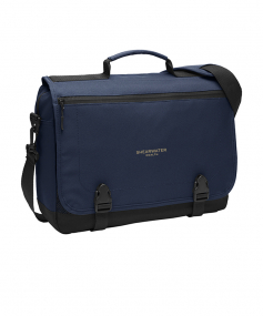 Protect your laptop, organize necessities and keep you business-ready. Features: 600 denier polyester canvas, Large, padded main compartment with laptop sleeve, Organization panel under flap, Detachable, adjustable, padded shoulder strap, Dual buckle closure on front flap. Laptop sleeve dimensions:8"h x 15"w; fits most 15" laptops. Dimensions:12"h x 15.5"w x 4.25"d; Approx. 1,470 cubic inches
